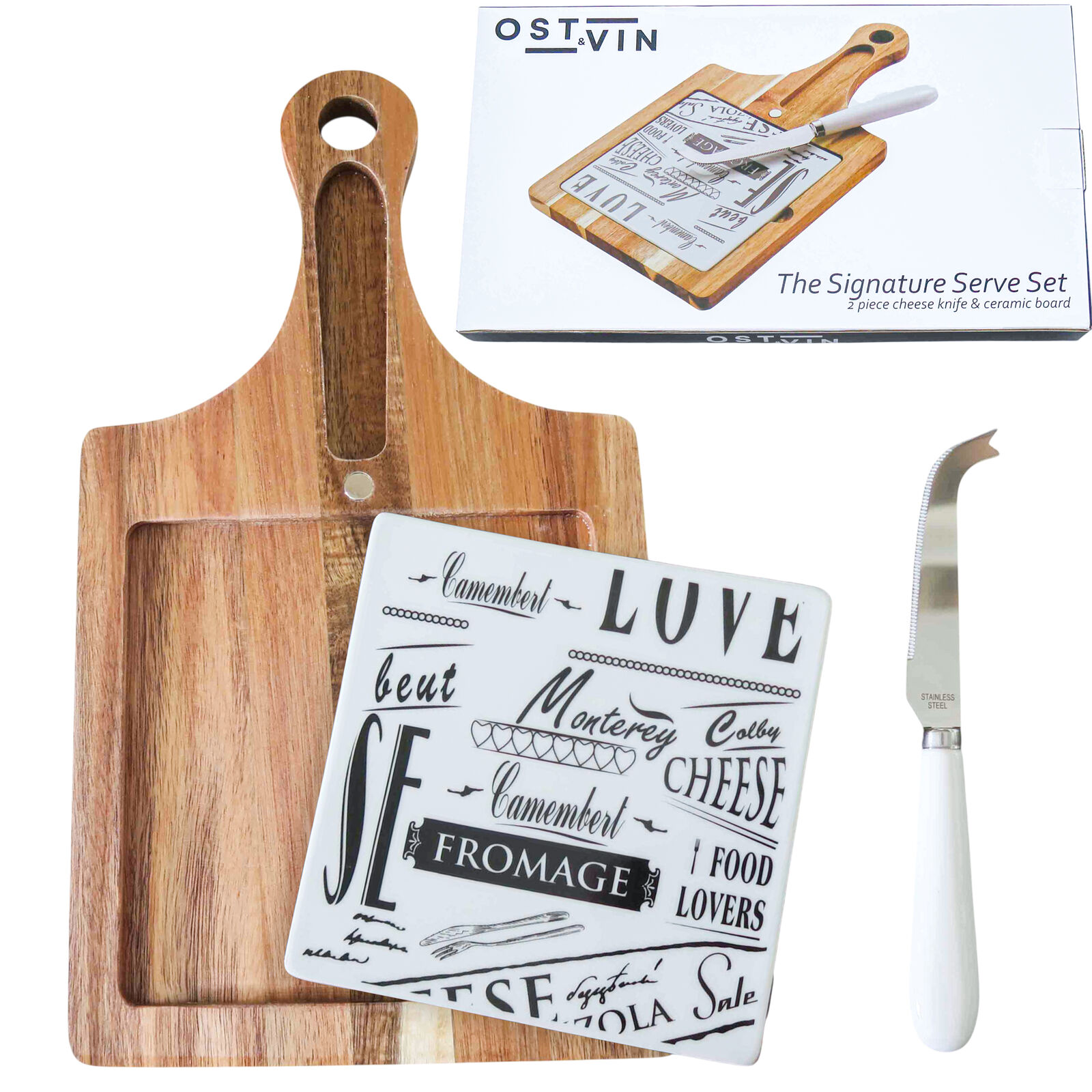 2 Piece Cheese Knife & Ceramic Board