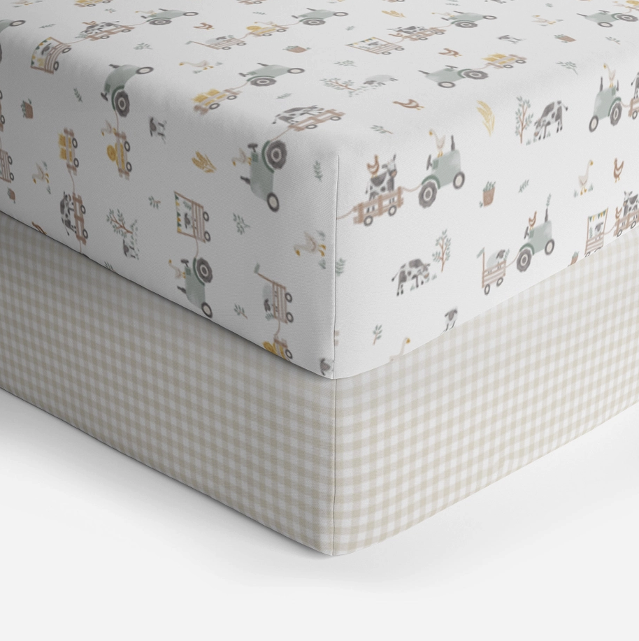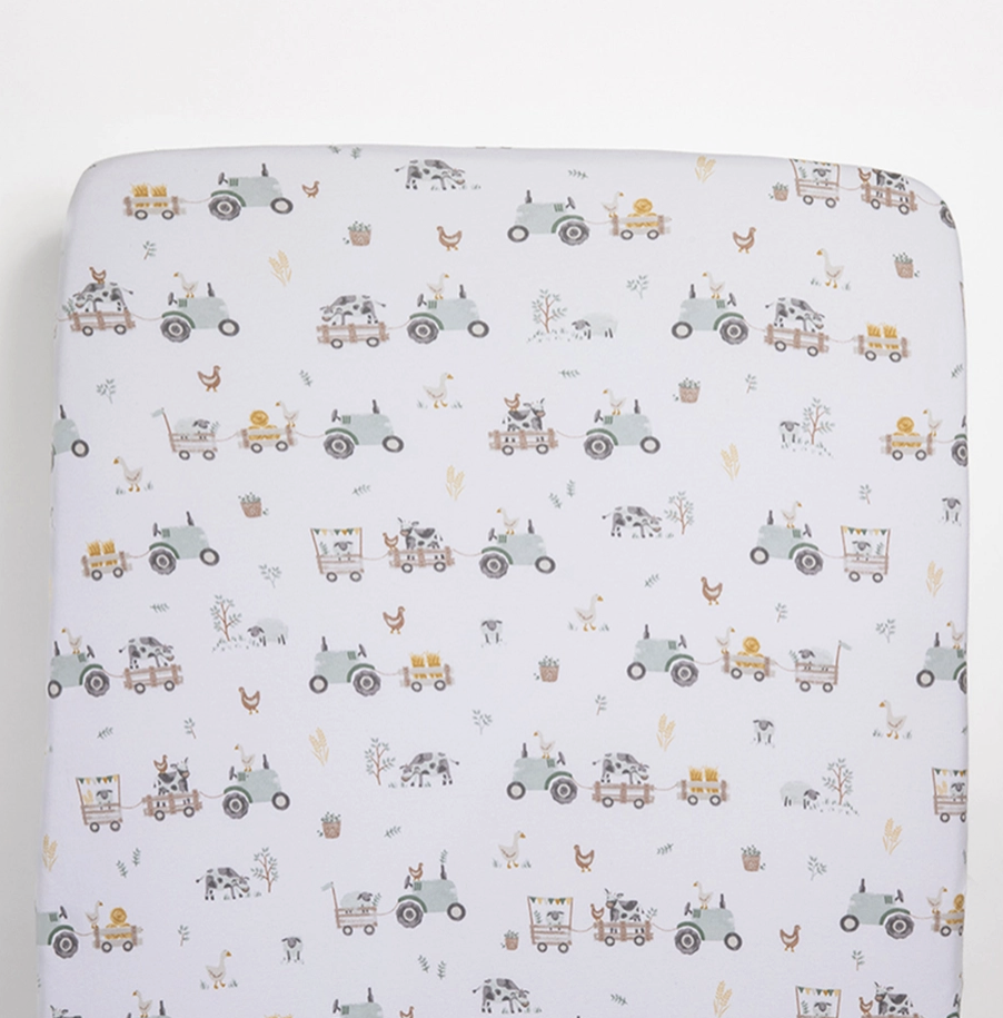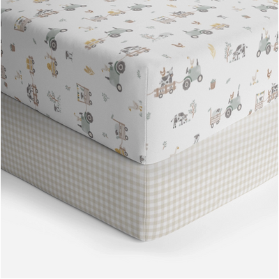 Add a touch of luxury to your baby’s nursery with this 100% Organic cotton Cot fitted sheet set. Crafted from soft and breathable premium 100% cotton jersey these sheets lay smooth beneath your baby and are perfect all year round. Featuring 360º premium elastic with extra stretch for a secure fit, these sheets are also machine washable and tumble dry safe. Match back with other coordinating items from the Tractor Ride collection to create the nursery of your dreams.