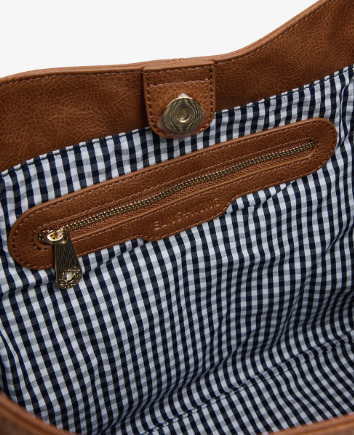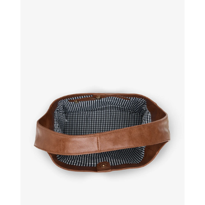 The Elms + King Arcadia Tote is made from premium 100%recycledpolyurethaneand features a blue & white gingham lining. The Arcadia is a relaxed tote bag with classic hobo styling. The roomy interior is secure with a top mounted mag closure, which opens to reveal an ample centre compartment with zippered pocket.