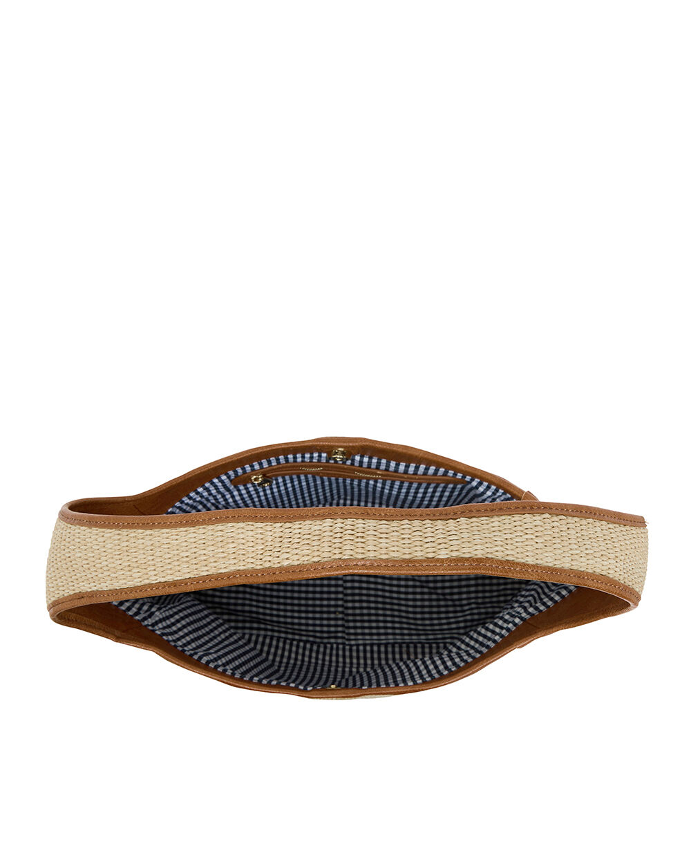 Material: 100% Recycled Premium PU (Polyurethane)Closure: Top mounted magnetic tabInternals:Zippered pocket Lining: Signature cotton navy & white gingham liningHardware: 14-karat light gold-plated hardware Logo: Embossed logoHeight: 25 cmWidth: 33 cm Depth: 11 cm