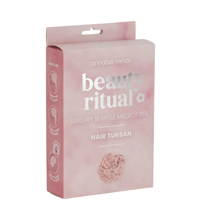 Searching for the most convenient way to dry your wet hair whilst keeping it up? This Luxury Hair Turban is the solution! Transform your post-shower routine into a luxurious and easy ritual with Annabel Trends absorbent Waffle Microfibre Hair Turban. Perfect for all hair types, it features a button/loop tie for an adjustable fit. Box Size: 19cm x 13cm x 4.5cm