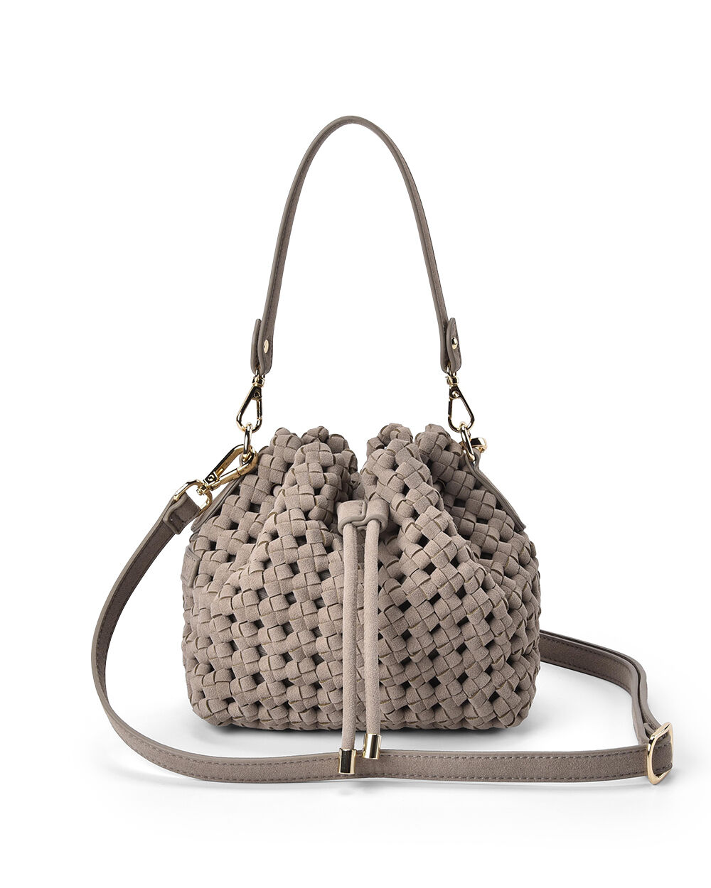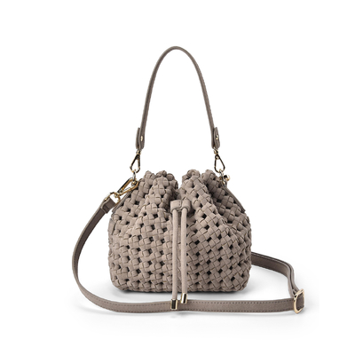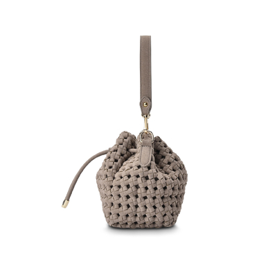 The Box Weave Bucket is a new season bucket bag that blends artisanal texture with everyday versatility. Crafted from soft micro suede that includes recycled materials, this statement crossbody bag features a hand-crafted box weave exterior for a rich, dimensional finish. Designed with both a short shoulder strap and a removable adjustable crossbody strap, it moves effortlessly from day to evening. Relaxed yet refined, the Box Weave Bucket is a standout addition to the Elms + King range.