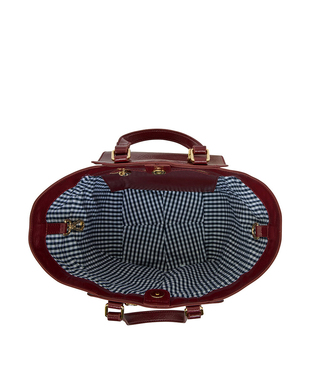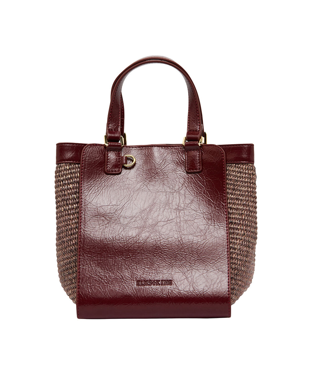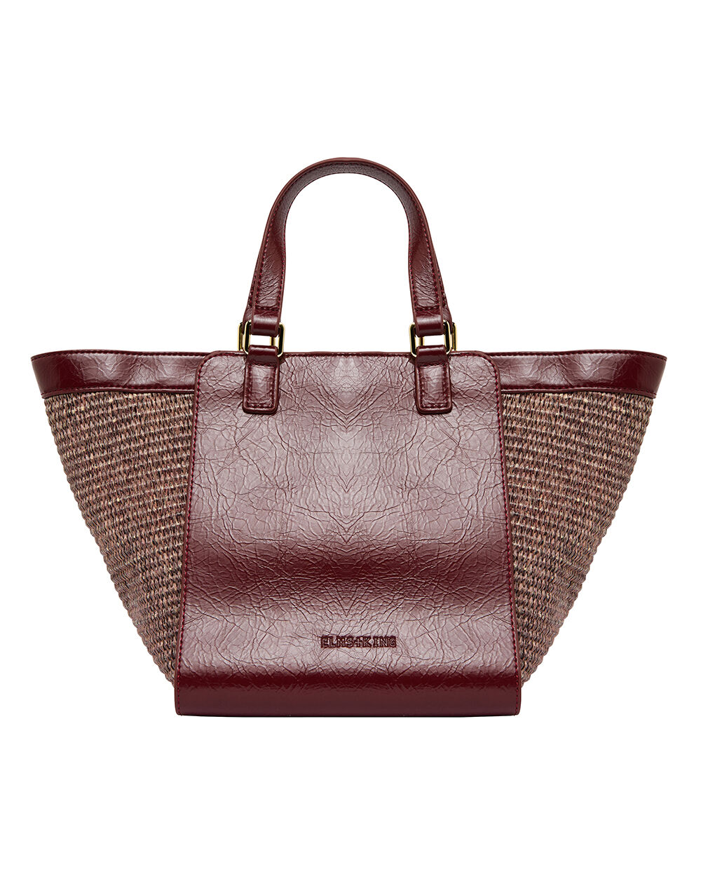 The Elms + King Carnegie Tote is made from premium 100% recycledpolyurethane, paired with woven polystraw.The Carnegie features classic winged sides with centre clip, enabling the tote to be styled with the sides tucked inwards, or opened out. The bag has a centre mounted magnetic closure, which opens to reveal a roomy main compartment, featuring the Elms+King signature gingham lining and a hanging PU pocket with zippered closure. The Carnegie pairs top grip handles and an adjustable & removable crossbody strap.