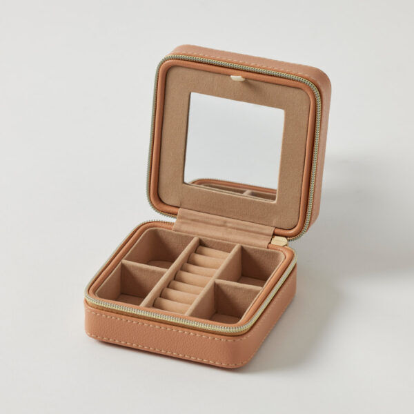 The simple and compact design of the Celine Jewellery Case makes it ideal for carrying jewellery wherever you go. Organise pieces with the built-in soft suede compartments that keep jewels secure and easy to find. Featuring a pebble faux leather textured finish and gold metal hardware for a simple, minimalist style and a small mirror to edit the finished look.