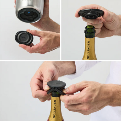 • BubbleLock™ Bottle Stopper. Removable stopper in base. Keeps wine bubbly longer.