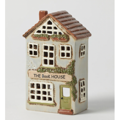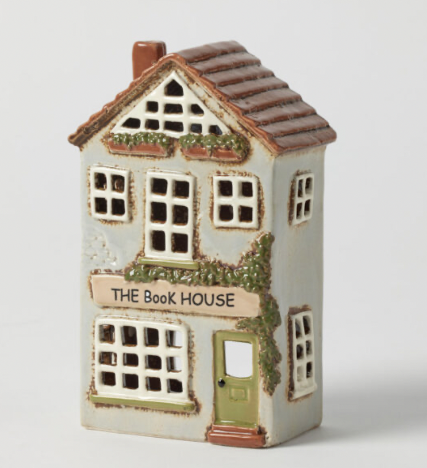 Inspired by the charm of a European village, the Book House Tealight Holder is reminiscent of a storybook townhouse. Beautiful as a decorative accent on its own or used as a tealight holder, it features climbing greenery, window boxes and a welcoming façade that add warmth and personality to shelves and tabletop displays. When lit, candlelight softly glows through the windows, with gentle smoke floating from the chimney for an atmospheric finish. Candle not included.e windows, with gentle smoke floating from the chimneys for an atmospheric finish. Candle not included.