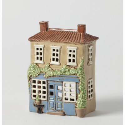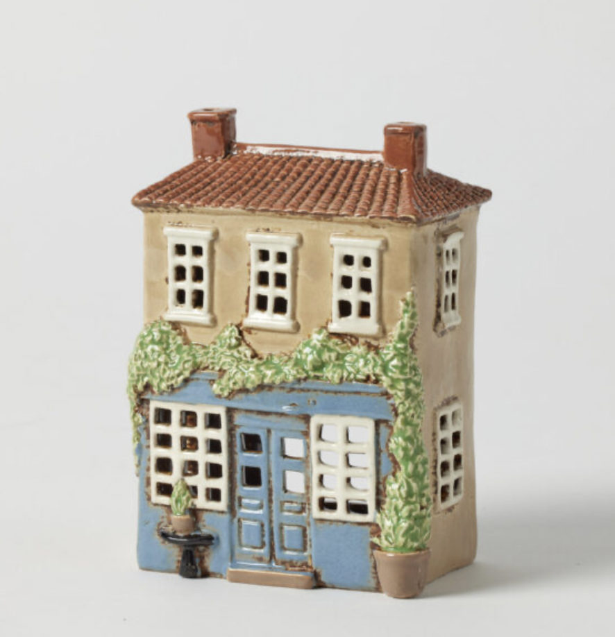 Inspired by the timeless charm of the English countryside, this hand painted stoneware design echoes classic village cottages. Designed for decorative styling or use as a tealight holder, it features soft neutral tones, a blue front door and climbing greenery that add depth and character to displays. When lit, candlelight softly glows through the windows, with gentle smoke floating from the chimneys for an atmospheric finish. Candle not included.