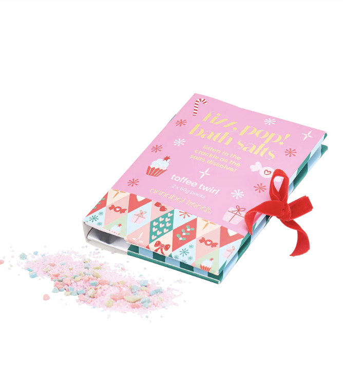 Let your ears delight in the crackling sounds as these festive bath salts dissolve! These toffee-scented salts are sure to be a hit with both children and adults, creating a fun and popping sensation in the bath. Enriched with aloe vera and cacao butter, they'll leave your skin soft and nourished. Perfectly packaged for delightful Christmas Stocking Fillers •