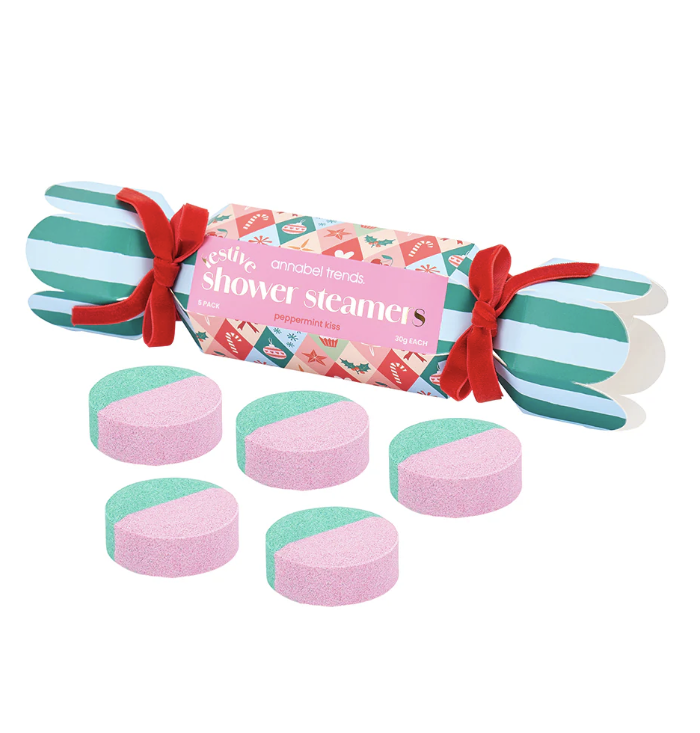 Give the gift of relaxation with our Festive Shower Steamer Bon Bon sets. Featuring festive scents of Peppermint Kiss and Citrus Spice, these 30g steamers are perfect for Christmas stocking fillers. Transform any shower into a spa-like experience and start your day off on a refreshing note. Bon-Bon contains 5 x 30g Shower Steamers. Box Size: 23cm x 6.5cm
