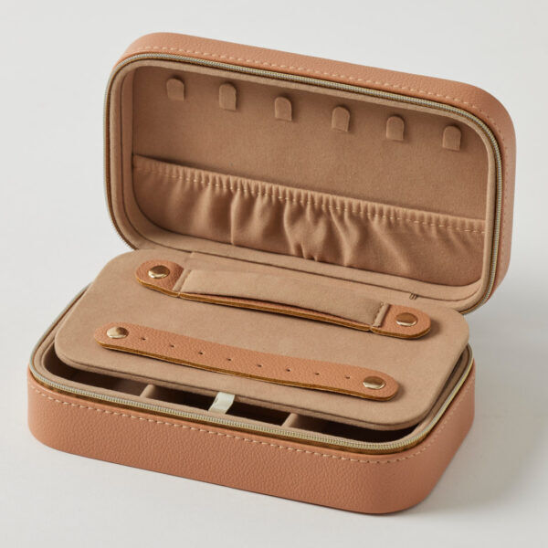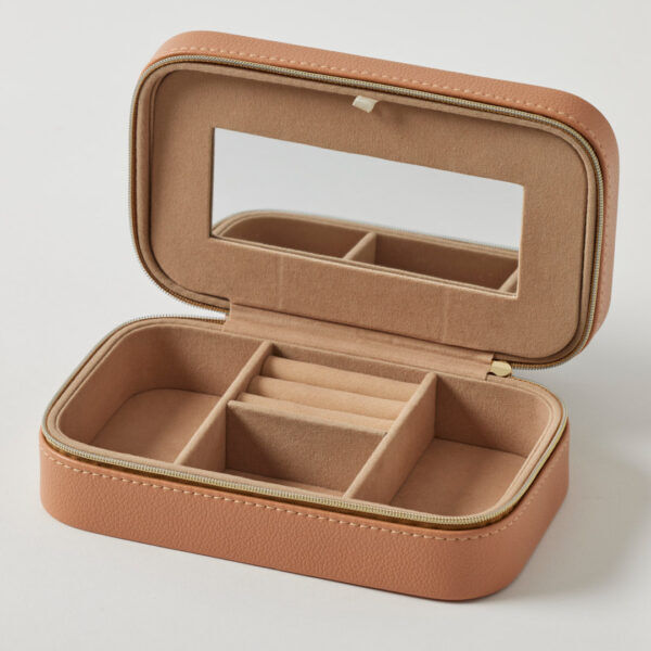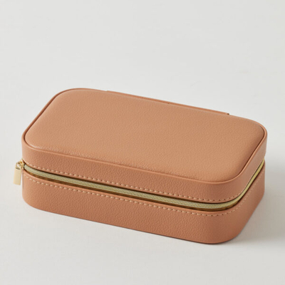 The simple and compact design of the Gigi Jewellery Case makes it ideal for carrying jewellery wherever you go. Organise pieces with the built-in soft suede compartments that keep jewels secure and easy to find. Featuring a pebble faux leather textured finish and gold metal hardware for a simple, minimalist style and a small mirror to edit the finished look.