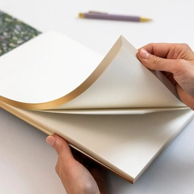 Illustrated by Kelly Ventura , featuring 100 heavyweight tear off blank pages. Bound with a gummed edge, and full heavyweight wrap around cover. Removable Gold Foil printed Bellyband and gold foil and gilded edges. Capture your dreams, paint your memories, illustrate adventures and immortalise artistic triumphs in these pages. Let the magic unfold and linger for years to come, turning each page into a chronicle of your artistic journey.