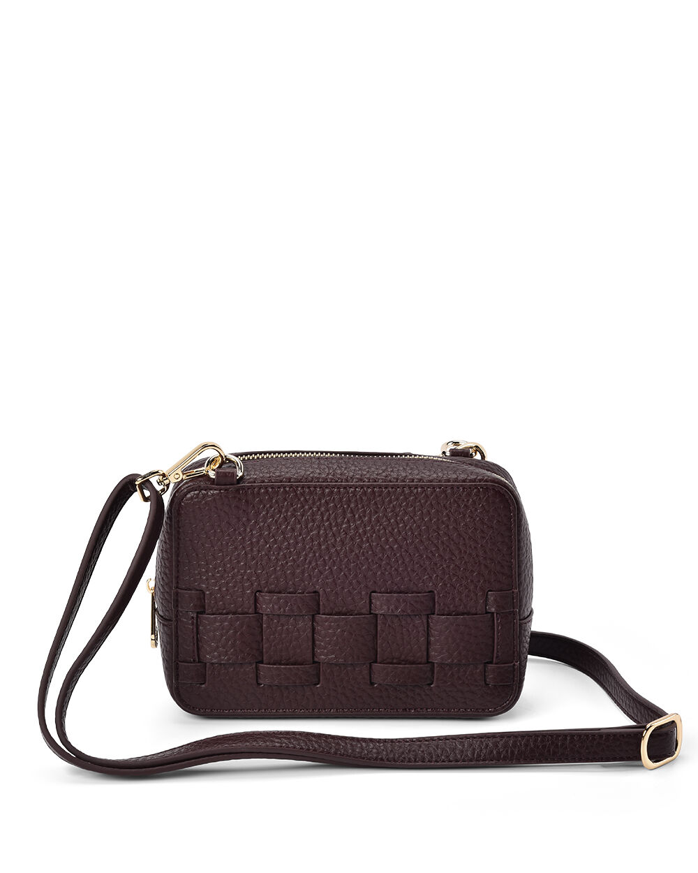 The London Crossbody is a new season crossbody bag designed with a structured silhouette and statement woven panel detailing. Crafted from GRS certified recycled material, this compact style blends everyday practicality with elevated texture. A secure zip closure keeps your essentials contained, while two interchangeable strap options allow you to style it your way. Polished yet versatile, the London Crossbody is an effortless day to evening companion.