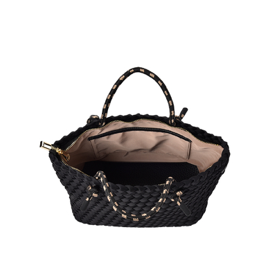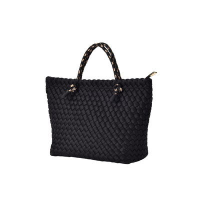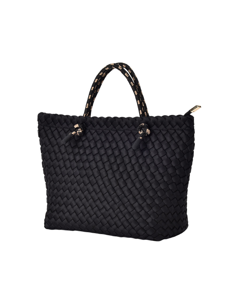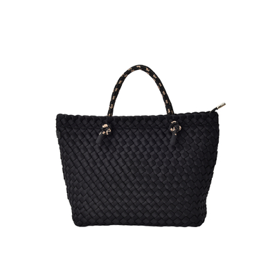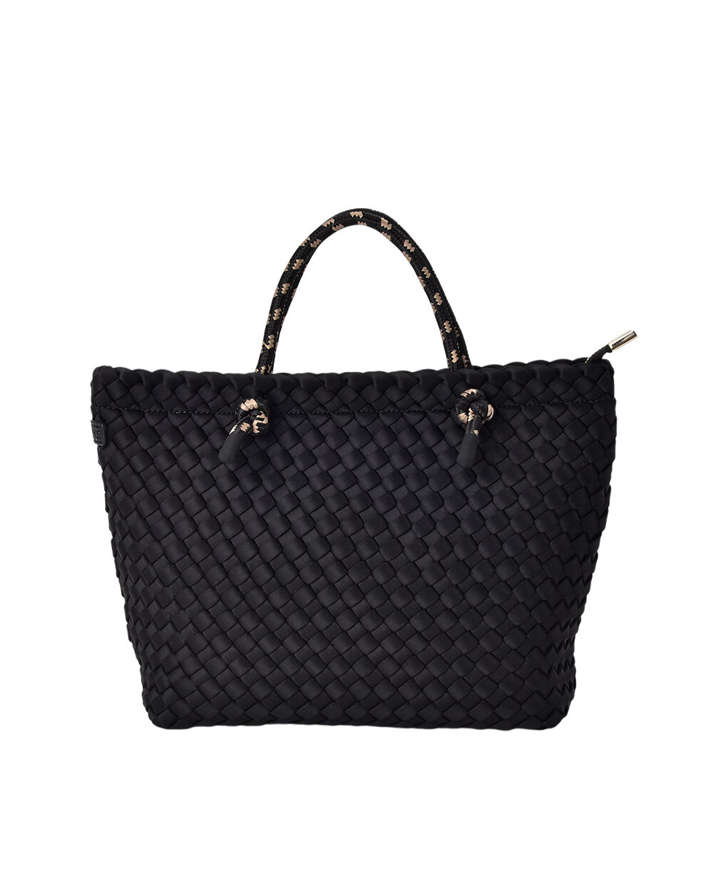 The Elms+King MichiganTote is a classic top grip tote, reimagined in plaited neoprene. The top zippered closure opens to reveal accent lining and an open top, slip pocket. The Tote has a detachable, adjustable crossbody strap, meaning it can also be worn across the body, for hand free ease.