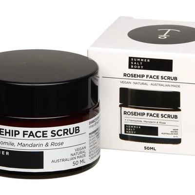 A gentle face scrub using Rosehip powder which works to buff away dead skin cells and leaves skin supple and soft. A fruit cocktail of Watermelon, Guava, Strawberry and Davidson Plum Extracts offer an added exfoliation effect and minimise pores for a more even skin tone. Decadently scented with notes of Lavender, Patchouli, Chamomile, Mandarin and Rose Geranium. • All Skin Types •
