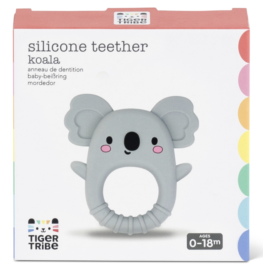 Made of soft, food-grade silicone, this sweet Koala teether is designed to soothe and comfort teething babes.